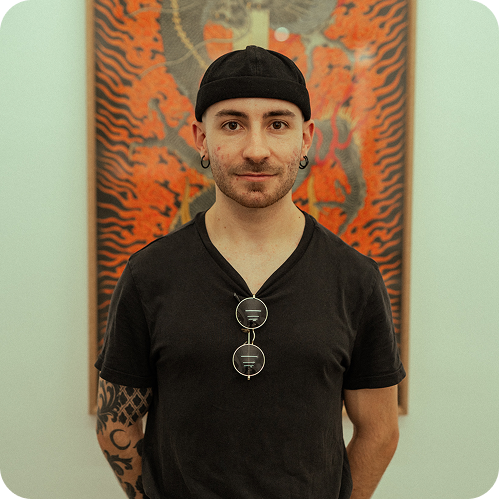 Con un estilo limpio y bien definido, Manny plasma motivos detallados, formas geométricas y composiciones visuales de alto impacto. Sus tatuajes destacan por su precisión, originalidad y estilo único.